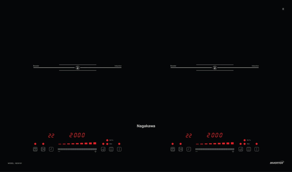 Bếp điện từ đôi Nagakawa NDI9191 nhập khẩu nguyên chiếc từ Malaysia. Bếp có thiết kế sang trọng, hiện đại theo phong cách Châu Âu, ứng dụng công nghệ Inverter thông minh giúp tiết kiệm điện năng tối đa với nhiều tính năng công nghệ vượt trội. Bếp từ là sự kết hợp hoàn hảo giữa công nghệ tiên tiến và thiết kế sang trọng. Với nhiều tính năng thông minh như INVERTER, BOOSTER, và hệ thống an toàn đa dạng, bếp đáp ứng mọi nhu cầu nấu nướng hiện đại.