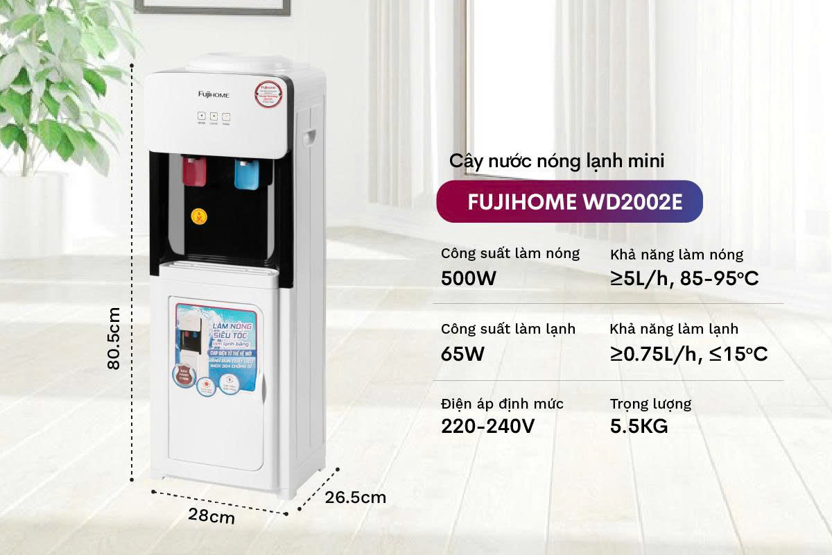 Sản phẩm mới ra mắt 2023 với mức giá rẻ nhất trong các dòng cây nước dạng đứng cùng loại, tuy nhiên FujiHOME WD2002E vẫn đảm bảo chất lượng bền bỉ vượt trội được đảm bảo mới thương hiệu FujiHOME