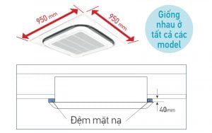 Kích thước mặt nạ đồng nhất cho tất cả các model FCNQ13-48M, đảm bảo tính thẩm mỹ đồng nhất khi nhiều thiết bị được lắp đặt 13.000BTU (1.5HP) .