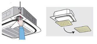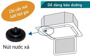 Tính năng Daikin FCNQ13MV1 có thể kiểm tra tình trạng của máng nước xả và nước xả bằng cách mở nút nước xả và lưới hút gió.