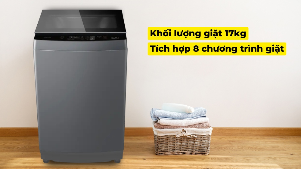 Với khối lượng giặt “khủng”, lên đến 17kg, chiếc máy giặt Toshiba cửa trên này là một lựa chọn phù hợp dành cho những gia đình có trên 7 thành viên. Ngoài ra, những gia đình có nhu cầu làm sạch lượng lớn đồ mỗi ngày cũng có thể chọn sử dụng chiếc máy giặt Toshiba này.