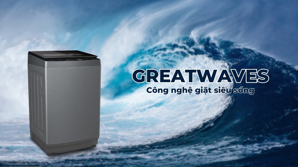 - Công nghệ siêu sóng GreatWaves tăng cường hiệu quả giặt xả quần áo.