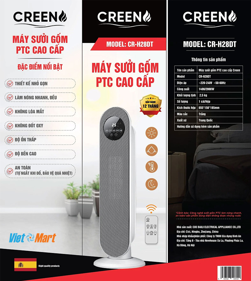 | Tên SP: | Máy sưởi gốm cao cấp CREEN CR-H28DT |