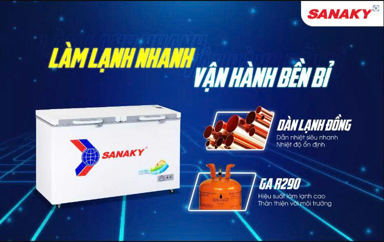 Tủ đông Sanaky VH-5699HYK sử dụng Gas R290 là dòng Gas tân tiến nhất hiện nay đang được dần thay thế cho các dòng Gas thông thường khác bởi những ưu điểm như: Hiệu suất làm lạnh cao nhất, Tiết kiệm năng lượng tối đa, Tỷ số nén thấp nhất, An toàn, không độc hại, Thân thiện môi trường.