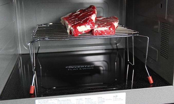 Công nghệ Inverter giúp lò hoạt động êm ái, tiết kiệm điện năng tiêu thụ và tiết kiệm được rất nhiều thời gian nấu nướng. Công nghệ này còn giúp món ăn chín đều, thơm ngon hơn.