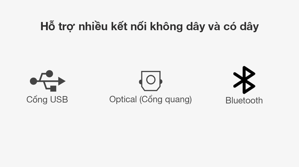 Việc kết nối với điện thoại, máy tính bảng với loa thanh (soundbar) Samsung này dễ dàng nhờ kết nối không dây Bluetooth thuận tiện, không cần dùng dây giúp người dùng chủ động, linh hoạt hơn.