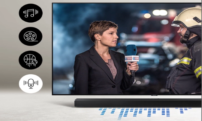 Loa soundbar tích hợp chế độ Adaptive Sound, giúp tự động phân tích và tối ưu âm thanh trên từng khung hình giúp người dùng tận hưởng sự cuồng nhiệt trong những trận đấu kịch tính hay lắng nghe trọn vẹn những cuộc hội thoại trong phim
