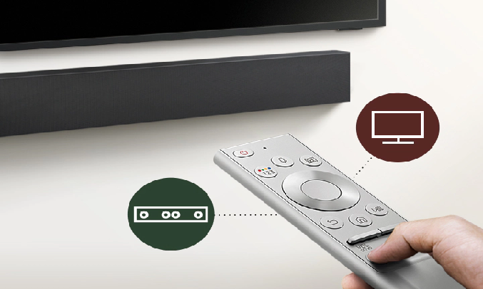 Người dùng có thể điều khiển loa thanh SamSung dễ dàng thông qua điều khiển từ xa One Remote. Đặc biệt chỉ cần One remote trên tay, bạn đã có thể tinh chỉnh âm thanh trên cả Tivi SamSung và loa thanh.