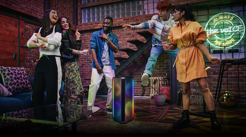 - Tạo không khí cuồng nhiệt cho bữa tiệc với tổng công suất loa 160W kết hợp thiết kế 2 mặt loa truyền tải chất âm đa hướng cho giai điệu lôi cuốn của bản nhạc tràn ngập khắp không gian rộng lớn, để cuộc vui sôi động trong từng phút giây.