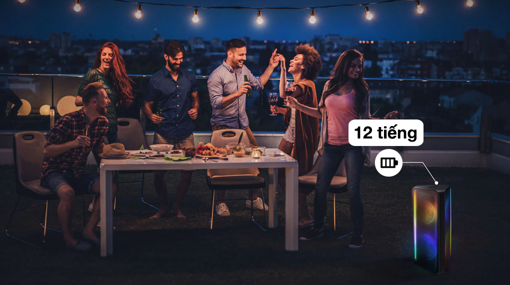 Loa điện này hoạt động liên tục nhờ nguồn năng lượng từ pin tích hợp hoặc dùng điện trực tiếp. Khi dùng pin, sản phẩm cho thời gian sử dụng đến khoảng 12 tiếng, bạn có thể mang loa ra ngoài sân, ban công, đến bãi biển,... nghe nhạc thỏa thích mà không cần tìm chỗ để cắm điện cho loa cực tiện lợi.