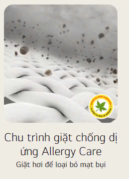 Máy giặt LG Inverter 9kg FB1209S5M được trang bị chu trình giặt chống dị ứng Allergy Care, giúp loại bỏ tốt các chất gây dị ứng như bụi bẩn, phấn hoa, lông thú cưng.