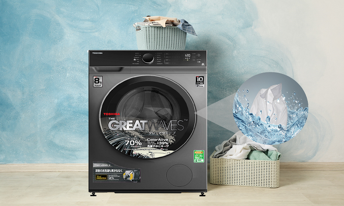 Chế độ giặt Color Care trên máy giặt Toshiba giúp đồ giặt giảm 39% độ phai màu và 45% độ biến dạng đồ giặt cho quần áo của bạn giặt sạch sâu, bền màu như mới.
