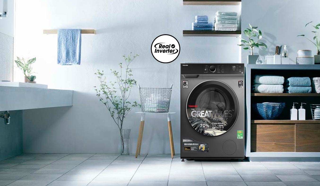 Máy giặt Toshiba Inverter 8.5 kg TW-BK95M4V(SK) trang bị công nghệ Real Inverter giúp tiết kiệm điện năng hiệu quả nhưng vẫn đảm bảo hiệu quả giặt sạch tối ưu. Không chỉ vậy, công nghệ này còn giúp máy giặt vận hành êm hơn, giảm rung ồn, tăng độ bền của sản phẩm. Nếu bạn đang lo lắng về vấn đề tiền điện mỗi tháng thì có thể yên tâm sử dụng chiếc máy giặt inverter này.