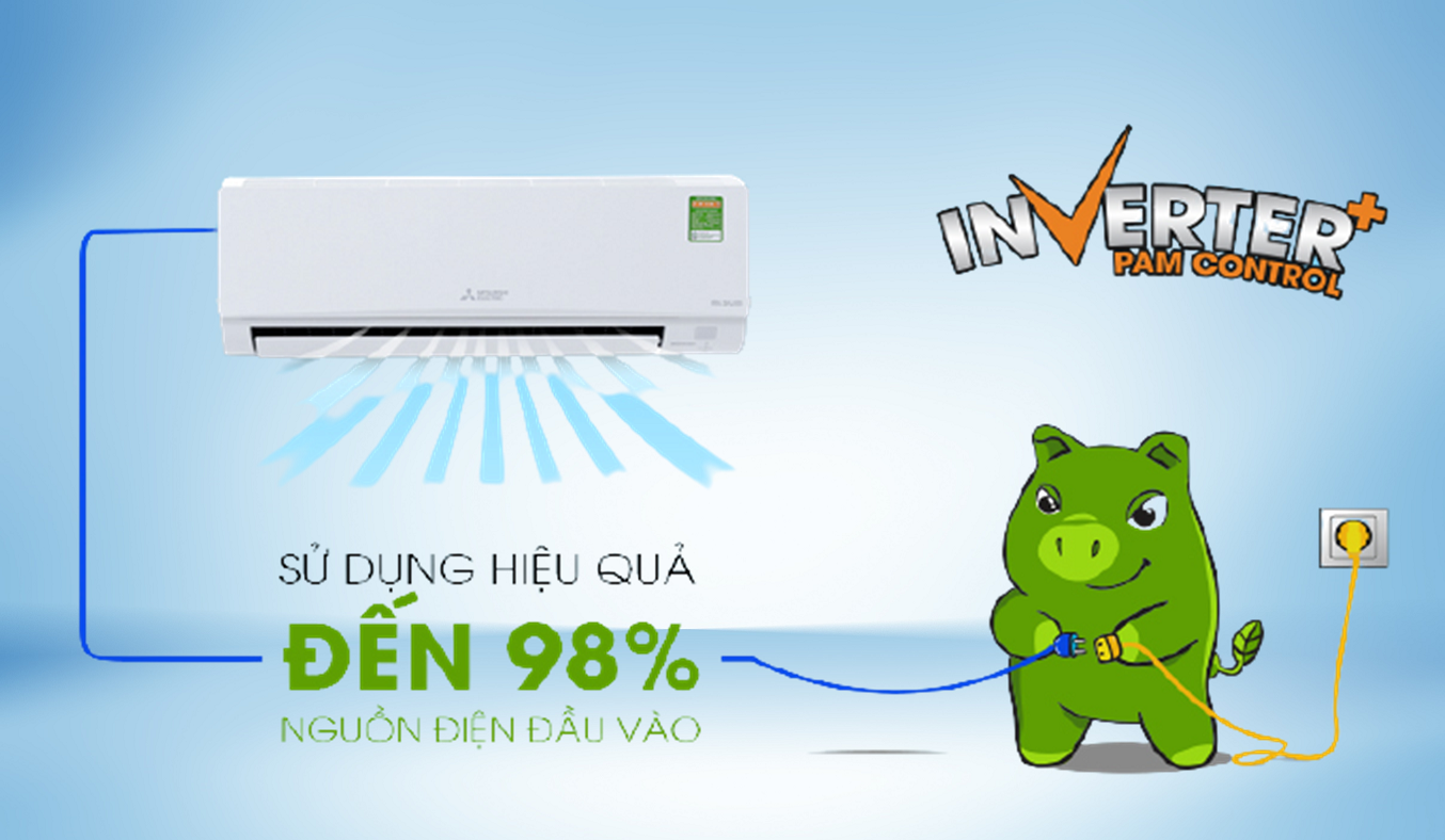 Máy lạnh Mitsubishi Electric Inverter 2 HP MSY-JP50VF trang bị vi xử lý Inverter kết hợp điều khiển PAM giúp 98% nguồn điện đầu vào được sử dụng hiệu quả. Ngoài ra, máy nén của Mitsubishi Electric sử dụng công nghệ độc quyền mang đến hiệu suất cao và ổn định nhất cho sản phẩm. Đặc biệt đi cùng công nghệ inverter là tính năng Econo Cool giúp tăng hiệu qủa tiết kiệm năng lượng lên 20%. Nhờ những tính năng trên, khi sở hữu chiếc điều hòa Inverter này, các bạn sẽ giảm bớt nỗi lo về hóa đơn tiền điện mỗi tháng. Không chỉ vậy, công nghệ Inverter còn giúp máy vận hành cực kì êm ái, bền bỉ và ổn định hơn.