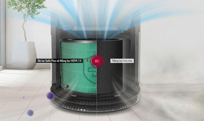 Màng lọc HEPA 13 kết hợp với màng lọc than hoạt tính có khả năng diệt khuẩn, vi rút và loại bỏ bụi bẩn lên đến 99,9%. Mang lại không khí trong lành và giảm thiểu các tác nhân gây dị ứng đến sức khỏe người dùng.