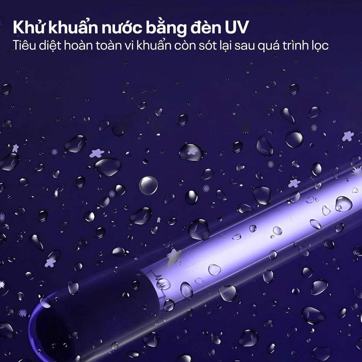 Bên cạnh đó, máy còn được trang bị bộ lọc Carbon sau RO, giúp loại bỏ mùi hôi, vị lạ và các tạp chất còn sót lại, mang lại nguồn nước có vị ngon, dễ uống và an toàn hơn.