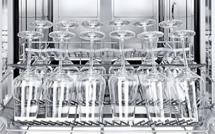 Máy rửa bát với bộ trao đổi nhiệt sẽ chăm sóc đồ thủy tính và sành sứ tốt nhất. Nước được đun nóng ở khoang riêng bên cạnh máy chống sốc nhiệt.