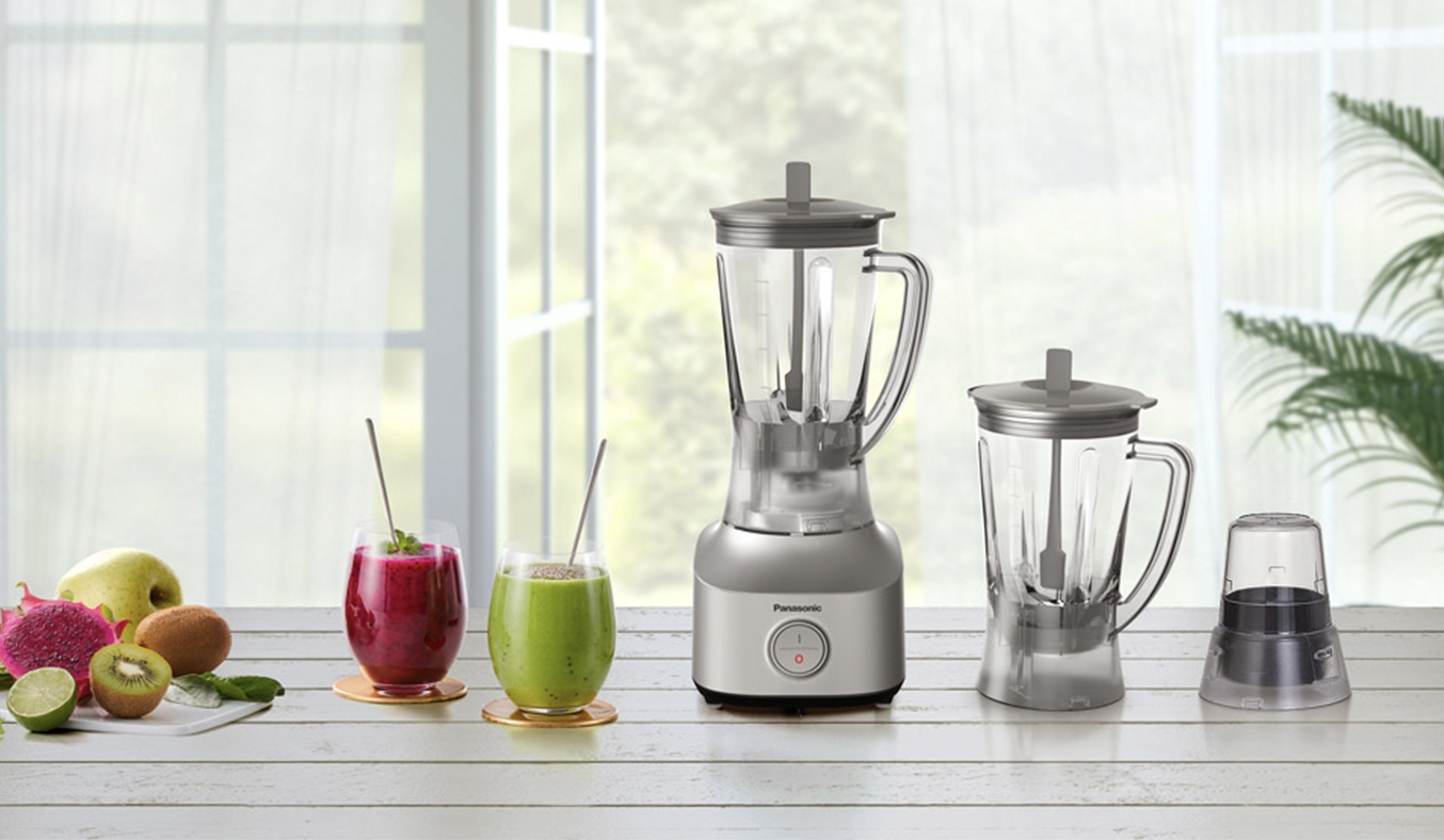 Máy xay sinh tố Panasonic MX-M210SRA sở hữu thiết kế sang trọng, hiện đại với sắc xám thời thượng, chất liệu nhựa trong suốt khiến trọng lượng máy nhẹ, nhỏ gọn, phù hợp với mọi nội thất trong căn bếp. Công suất 450W cùng dung tích cối 1L giúp bạn có thể chế biến được hầu hết mọi loại thực phẩm từ xay sinh tố, xay tỏi, làm sốt,...