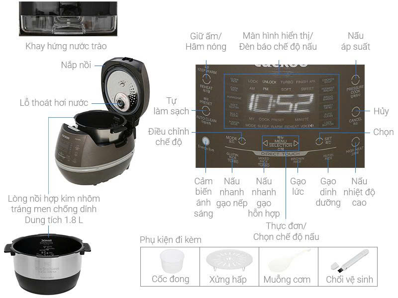 Nồi cơm điện cao tần áp suất Cuckoo CRP-CHSS1009FN 1.8L
