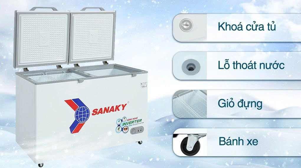 Tủ đông Sanaky Inverter 410 lít VH-5699HY3 thuộc một trong những loại tủ có dung tích khá lớn 410 lít đáp ứng cho nhu cầu bảo quản thực phẩm của gia đình từ 4 - 5 thành viên hay trong các quán ăn, cửa hàng. Trang bị các công nghệ hiện đại như làm lạnh trực tiếp, công nghệ Inverter giúp bảo quản thực phẩm tươi ngon lâu mà vẫn tiết kiệm điện.
