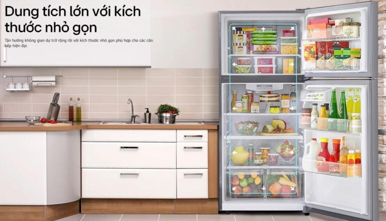 Dung tích sử dụng lên tới 572 lít trong đó dung tích ngăn đá 156 lít và dung tích ngăn mát 416 lít, chiếc tủ lạnh LG LTB55BLMD này có thể đáp ứng nhu cầu sử dụng cho những gia đình có từ 4 đến 5 thành viên.