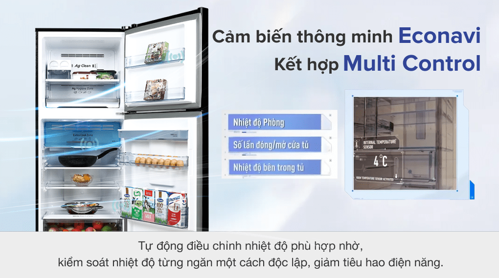 Kết hợp với Multi Control sẽ kiểm soát chính xác nhiệt độ bên trong của từng ngăn tủ một cách độc lập, để điều khiển tủ hoạt động với nhiệt lượng phù hợp tránh tiêu hao năng lượng, mang đến hiệu quả kinh tế cho người dùng. Với công nghệ Inverter tủ lạnh sẽ vận hành ổn định, không gây tiếng động giúp tiết kiệm điện.